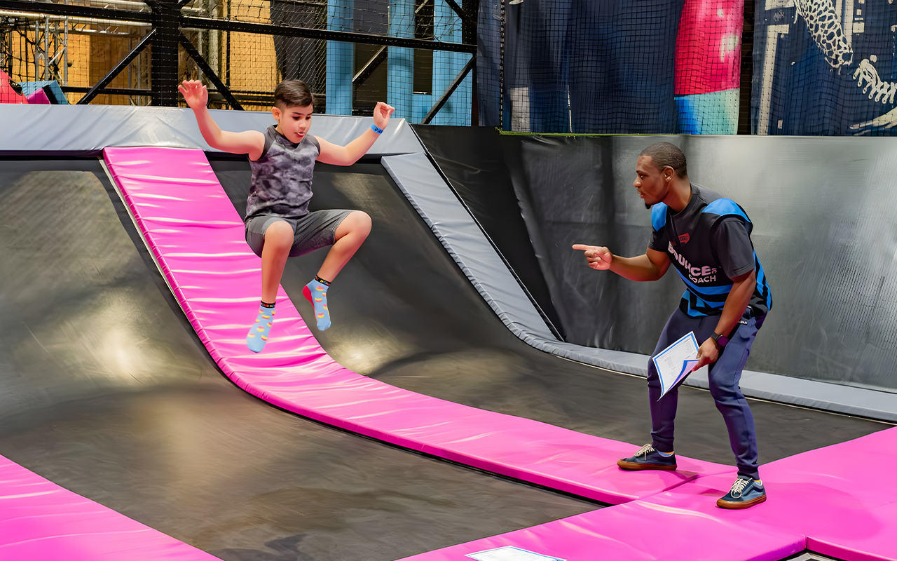 Trained coaches spend one on one time with each participant, guiding them through correct form to build technique. Coaches will focus on individual skills, progressing into routines which incorporate flips, doubles, twists and layouts.